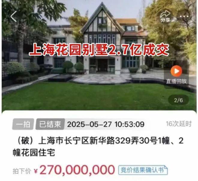 前天上海一花园别墅以单价约50万/㎡,总价2.7亿元成交,建面约535㎡,独占约1.5亩城市核心土地。