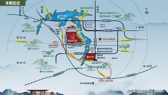 政府重点规划黄山东门(谭家桥)及黄山北门(本项目所在地-甘棠)。东门规划总投资124亿元建设T1轻轨,全线长约50.6公里,共设站9座,线路起自黄山北站,终至黄山风景区东大门谭家桥,沿线串联潜口、呈坎、富溪、黄山风景区、翡翠谷、黄山东大门谭家桥等主要旅游景区。另在建“一索道一中心”(云谷索道下半段项目和黄山东大门综合服务中心),两个项目是黄山东大门建设的引领性和关键性工程,计划营运时间为2025年。另规划T2由黄山东经黄山区到达太平湖景区,途经甘棠镇、耿城镇,规划T3串联宏村、黟县、齐云山等,整体形成闭环的旅游交通网络。我们项目距离黄山东门仅20公里,约20分钟车程。黄山北门的建设也如火如荼,黄山区“十三五”规划中,将亚洲最长的索道——黄山北大门太平索道及游客集散中心下移计划明确列出。目前游客集散中心已建设完成,距离项目仅2公里。市政府也提出了“打造黄山北大门,建设未来新汤口”口号,大力推动黄山区城市的发展及旅游产业的发展。