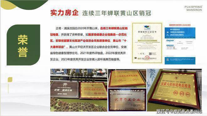 项目凭借优越区位、高端配套、卓越品质等核心优势奠定价值基础,赚得市场口碑,以“业主变亲人,庄园变乐园”的理念,自开售以来即是黄山区网红楼盘,2021年、2022年、2023年连续3年蝉联黄山区项目销冠;无论是产品质量、亲人服务、项目配套都深得全国各地业主的喜爱及赞扬。
