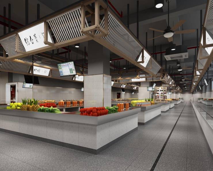 经营业态:包含业态卤菜熟食、水果、水产品、禽蛋、冻品、肉类、豆制品、面食、粮油、美食加工区等。