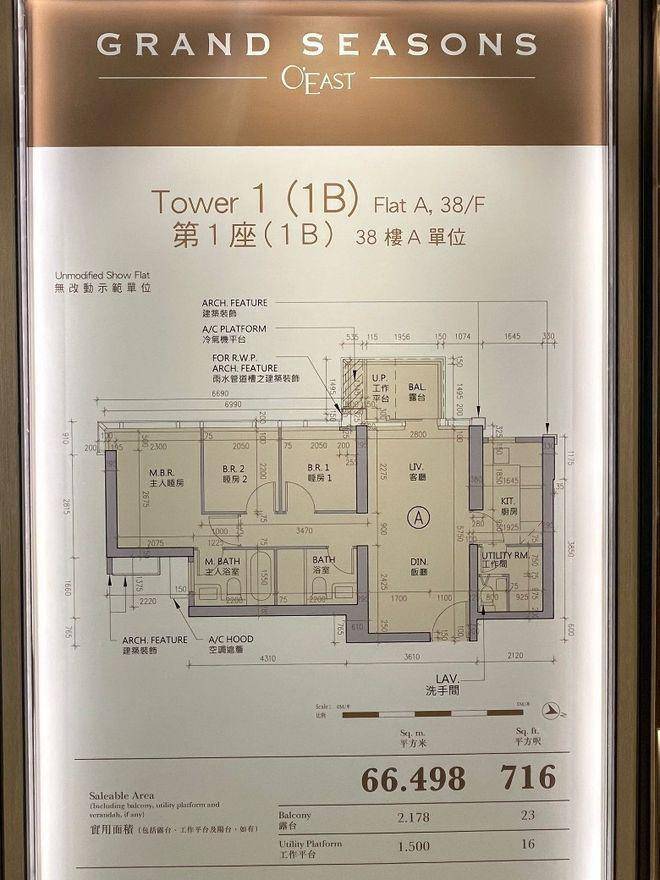 GRAND SEASONS 三房无改动示范单位参照第1B座38楼A室为蓝本而建,实用面积716方呎。