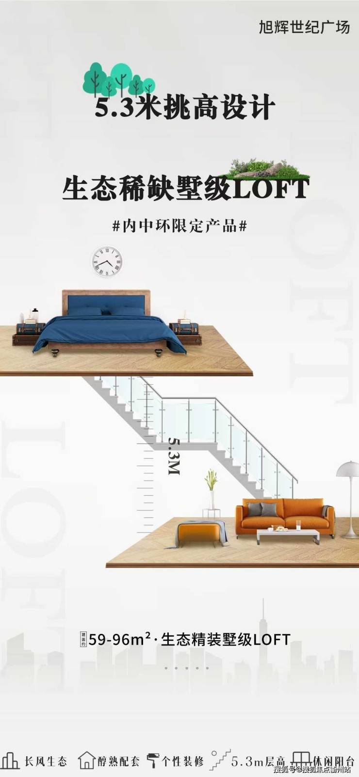 「旭辉世纪广场」不限购公寓 在售5.3米loft公寓+平层公寓--精装修-不限购