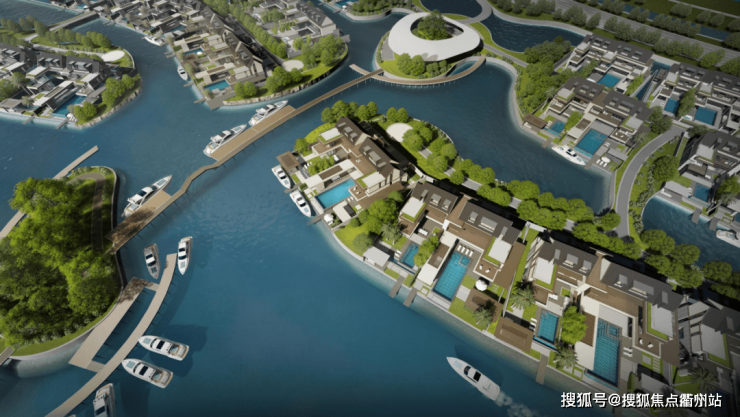 项目从此前曝光的设计方案就可以看出亮点,每一排别墅前都有一条渠道,引入水系,可以停游艇。