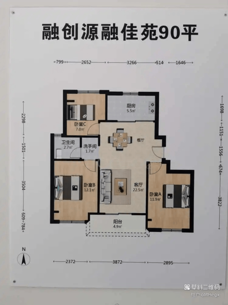 三开间朝南、全明格局设计