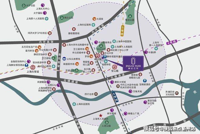 静安巴黎位于上海传统富人区静安区,苏河湾板块(苏州河与黄浦江交汇处),紧邻南京西路、人民广场,坐拥上海核心资源。