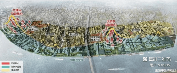 杨浦滨江,内环CAZ最难得大规划整体开发滨江区域。在上海“一江一河2035规划”中,杨浦内环滨江是45公里滨江带中重点规划的“科创研发”板块。同时,根据《杨浦滨江南段控制性详细规划》,杨浦滨江南段,规划八埭头、大桥东两大功能核心,未来将打造成“世界创新要素的交汇枢纽、历史未来交融的魅力水岸、卓越人才安居的海派社区”。