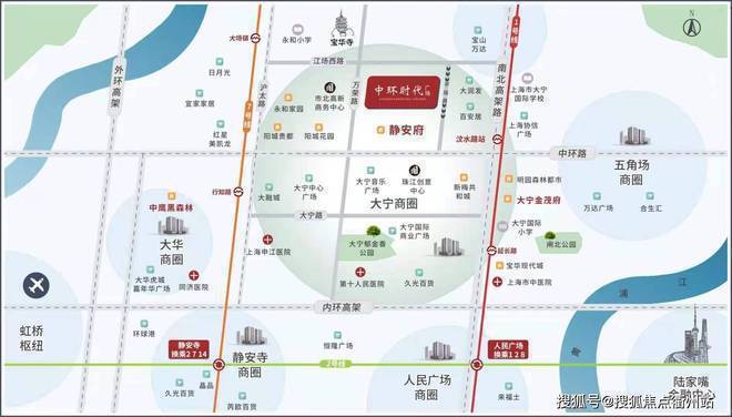 交通:地铁1、7号线双轨道交通,1号线7站直达人民广场,中环高架、南北高架和36条城市公交线路