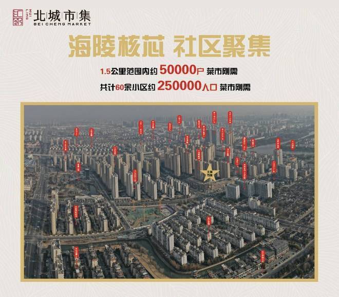 泰州北城市集.项目位于老城区核心地段,周边都是交付10年以上的成熟楼盘,项目1.5公里范围内约100多个成熟小区,约5万余户,常住人口约25万左右,无客群顾虑,未来的商业价值不可估量。围绕居住配套功能,以高度专业能力,通过搭建“5G 4.0 生鲜农贸市场”,“特色餐饮”,“社区配套服务”三大功能重新定义和塑造菜场,集“时尚感、烟火气”为一体,打造以菜场为核心的社区便民服务中心,升级为“精而美”的商业综合体,即“菜场+商业配套+社区活动中心”的社区商业新模式,为周边 3km 内居民提供全方位的生活服务。