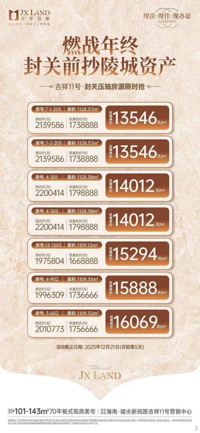 陵水吉祥11号:100 - 142㎡精装现房,开启舒适生活——总价145万起