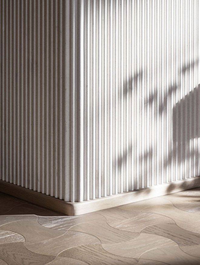 细节之处,连墙板,都是用天然石材打造,造型如同江面泛起涟漪:
