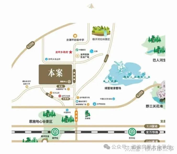 由于本项目正处于龙坪乡集镇上,所以配套非常方便! 离菜市场步行仅 4分钟,离医院步行仅 8分钟。