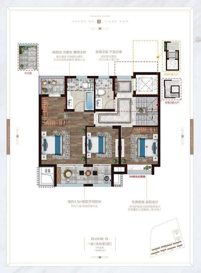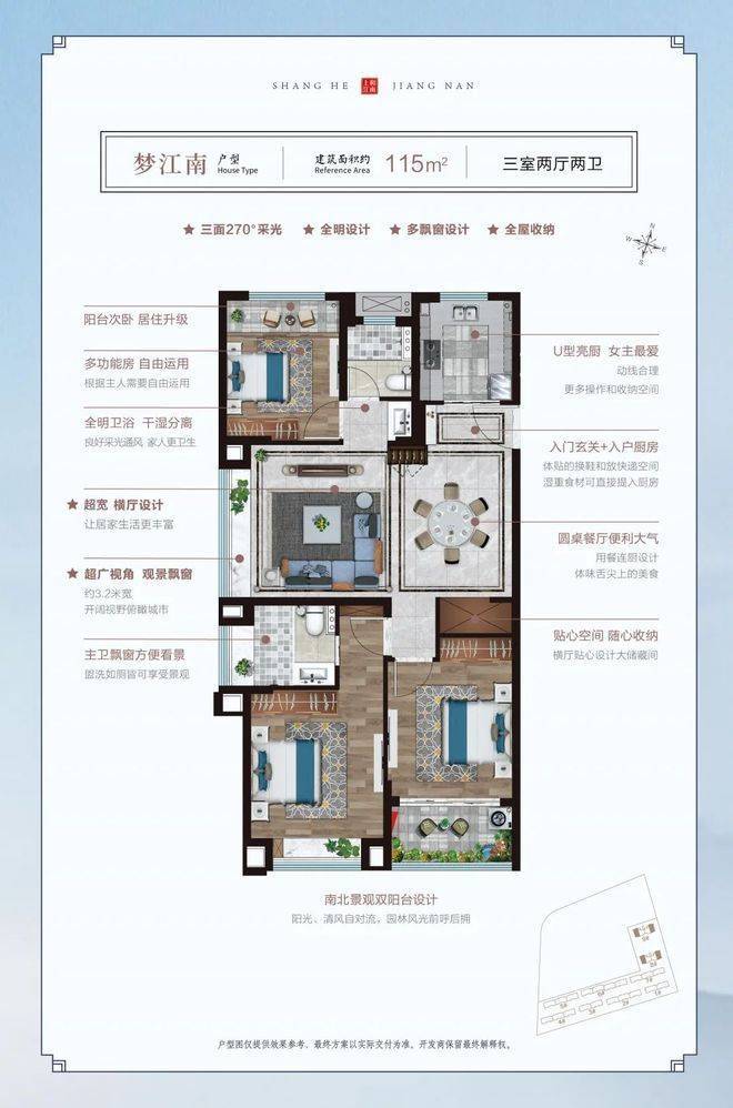 该边套观景户型进门是独立的入户玄关,私密性好,阔绰客餐厅,约3.2米观景飘窗,超广视角,两间卧室朝南,其中一间卧室还自带阳台。