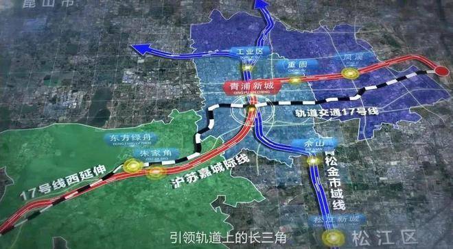 三轨交换乘配置:除了17号线之外,还有已经开工的上海示范线路(沪苏嘉城际)、规划中的嘉青松金线,青浦新城站将成为三线换乘的枢纽站点。