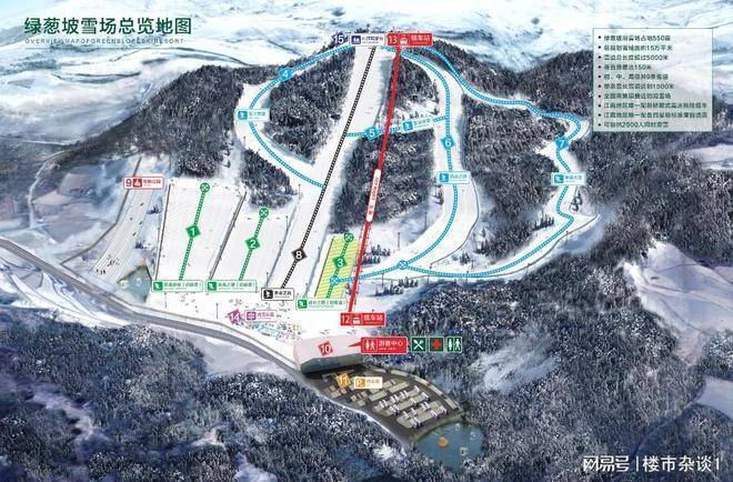 冰雪运动:以华中区域规模最大的滑雪场为核心,绿葱坡滑雪场占地约 35 万㎡,总雪域面积约 15 万㎡,有初级道、中级道、高级道等 9 条多级别雪道和 4 条魔毯及戏雪区,雪道总长度 5000m,最长滑道 1500m,垂直落差达 150m,西侧还设置 1 条高速轿厢式缆车。