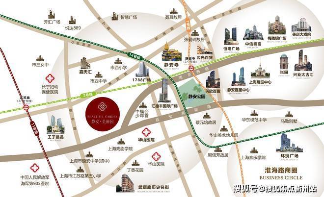 位处于长宁区、徐汇区、静安区三区交汇处,隶属于静安区黄金城市主干道上