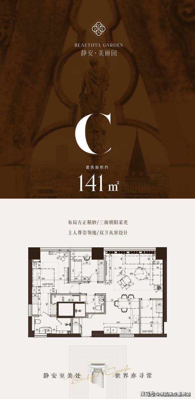 C户型面积141平方:三房两厅两卫