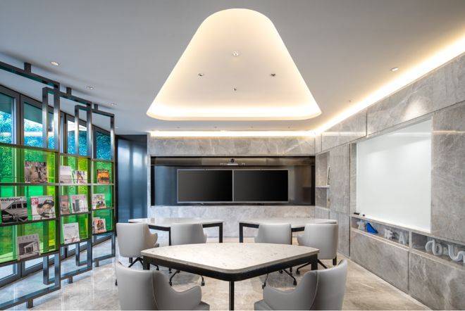 首层大堂约9米的超高挑空,设立了礼宾台及休息会客区,尊崇感十足.项目由新鸿基启胜物业提供了港式高标准的物业服务,包括管家、客服、24小时云端安防,以及各类定制服务.