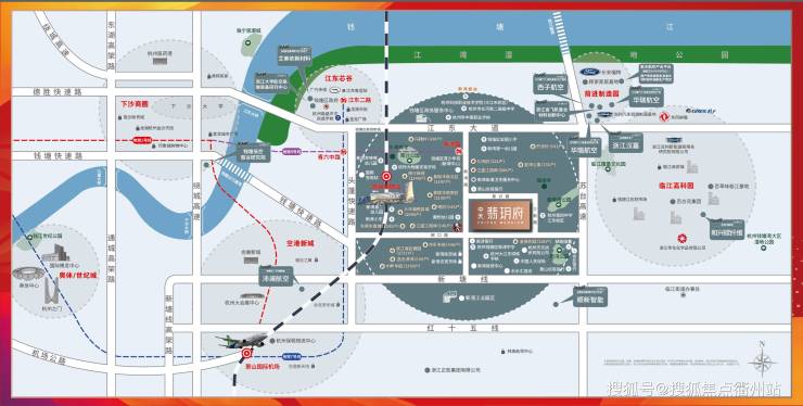 🔸地铁为邻 人气云集:近邻地铁8号线-新湾路站、17/20/21/22号线(规划中)、机场快线31号线(规划中),与钱塘区TOD引擎-钱塘高铁站(规划中)无缝链接