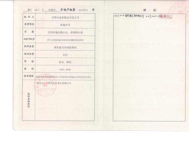中国建设银行(日照济南路支行)、日照银行(总行营业部)、中国银行(日照新市区支行)、中国农业银行(日照秦楼支行)、中国工商银行(日照泰安路支行)、招商银行(日照分行)