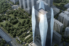 建筑外立面采用现代简约和都市潮流相结合的风格,通过高耸挺拔的玻璃幕墙、强烈金属质感的建筑材料以及国际流行的色调,衬托出建筑的高端,彰显都市感和现代感。