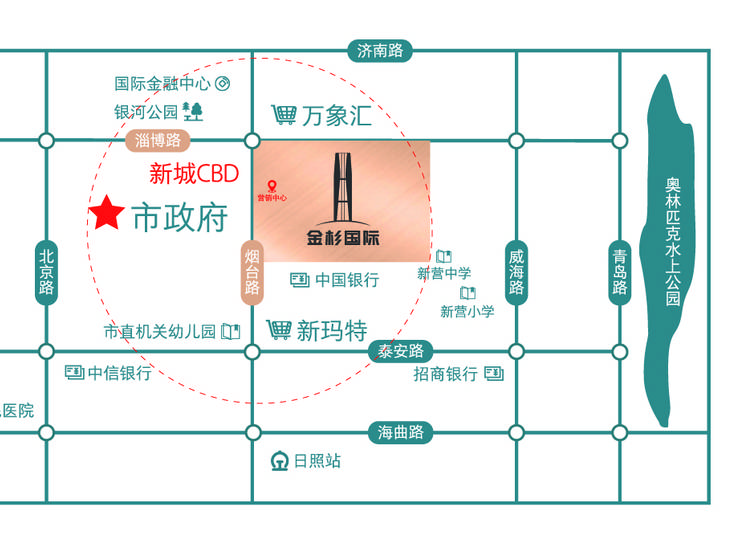 紧邻烟台路与淄博路城市主干道,交通便捷