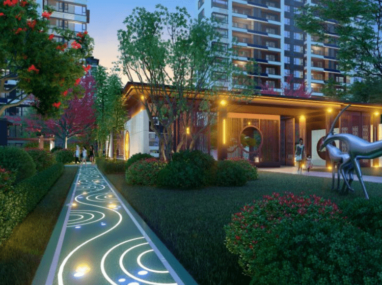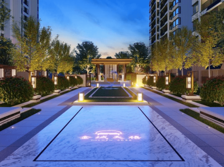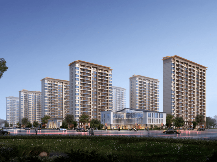 金域天禧项目北临福海路,南至兴海路,东侧紧邻海曲印象文化广场,西侧为正阳路,处于区政府核心板块的中心位置,周边配套也是十分完善,项目占地面积约39792㎡建筑面积约118571㎡,容积率2.2,绿地率30%,规划建设9栋小高层住宅及部分底商,住宅全部为18层封顶,整体住宅规划户数668户,车位配比约为1∶1。