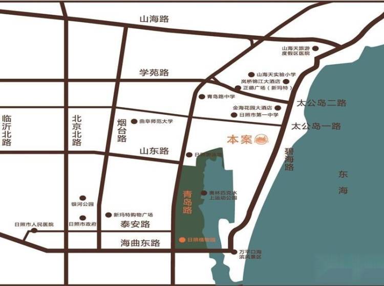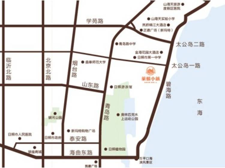 位于东港区太公岛一路,一佳高中南面,日照山海天片区及新市区的交会处