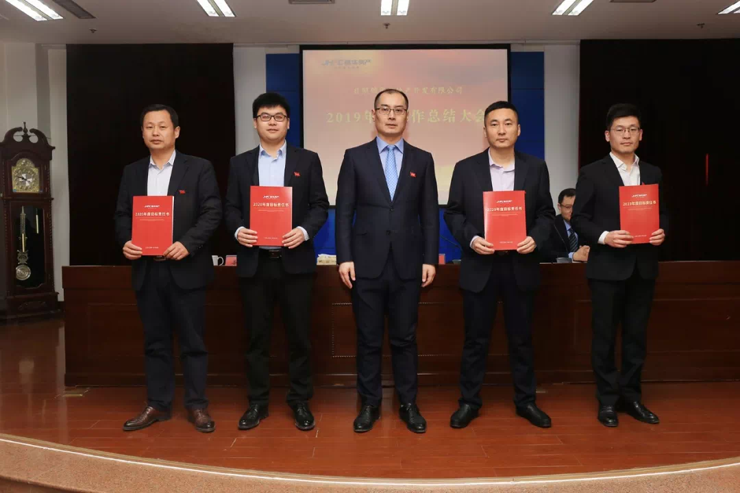 工作报告后,公司各项目部、销售部负责人依次上台,领取2020年度目标任务书,明确各项目部、销售部开发建设、销售回款节点目标,确保完成公司年度产值与销售任务。随后进行锦园(一期)项目跟投预分红,跟投股东依次上台领取分红股金。