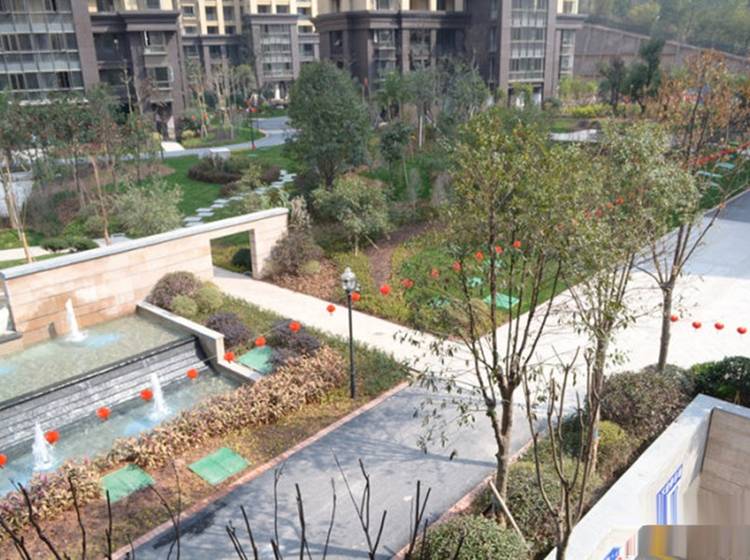 景观配套:三个组团九大园区,以水为主题的新古典主义风格的园林景观