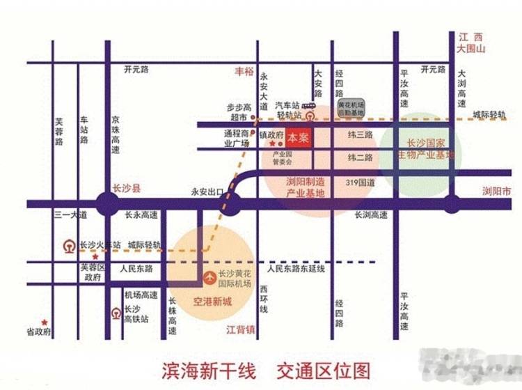“滨海新干线”位于湖南浏阳制造产业基地大安路与永泰路十字交汇处,是浏阳市重点建设工程。 滨海新干线总占地面积为120亩,一期用地14.03亩。项目一期规划有一栋十八层的商住楼和一栋按星级标准设计的酒店,沿街二至三层为商业裙房。