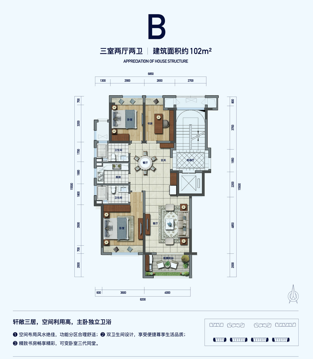 待售 户型方正 全明格局 主卧带卫 飘窗 露台