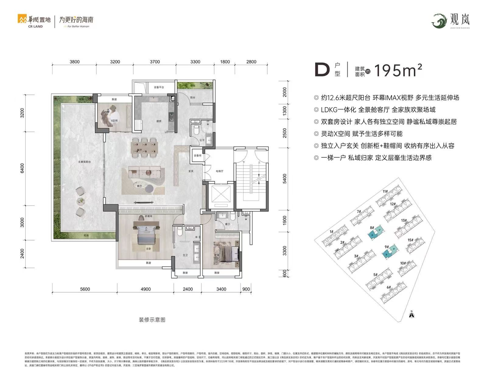 建面195m²
