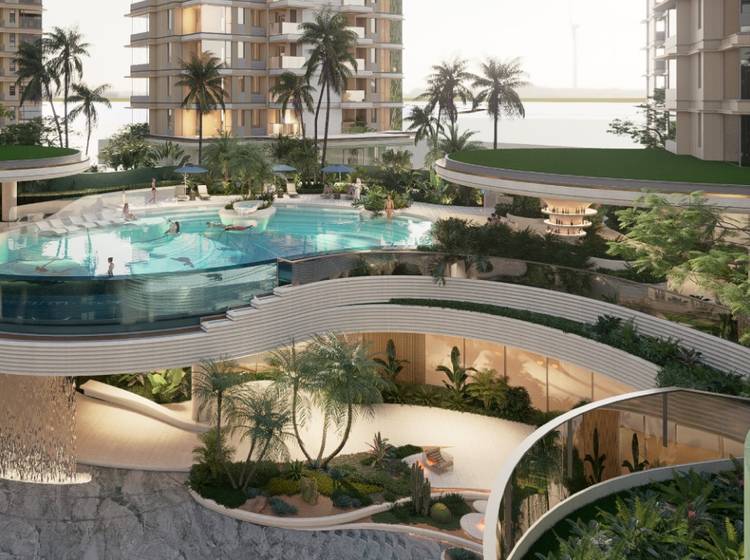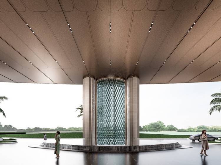 约320㎡无边际悬空泳池:通过流水叠瀑链接负一层会所;