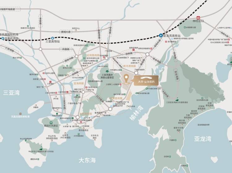 西侧紧邻榆亚路,向北对接迎宾路、亚龙湾,向南接入红沙隧道等城市主干道;便捷通达大东海商圈、椰梦长廊、鹿回头景区、亚龙湾高铁站等地。