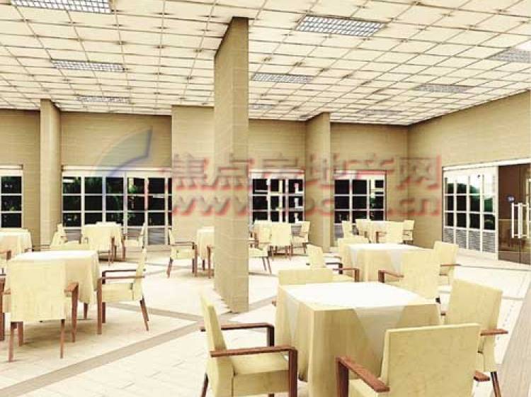社区餐厅:设置在6号楼、7号楼的架空层内,属于半封闭式公共餐厅,面积580㎡,设置就餐桌椅和配餐台,每日三餐,供业主们享用。