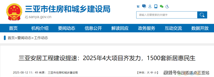 8月12日,三亚市住房和城乡建设局发布:2025年,三亚市安居工程建设正全力加速,今年将重点推进4大安居房项目,计划建设安居房超过1500套。保障性住房“量质齐升”,让“住有所居”的承诺落地有声。