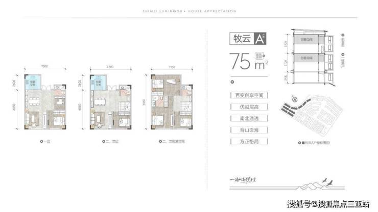 一期首推的是75㎡的牧云系列、75-150㎡的观海系列、100㎡的拾光系列,85㎡的望峯系列和75㎡的听澜系列,每户都享有极佳的景观面和超大的拓展空间,整体性价比很高。总价百万起,轻松入手海南自贸港的绝版山海资产。
