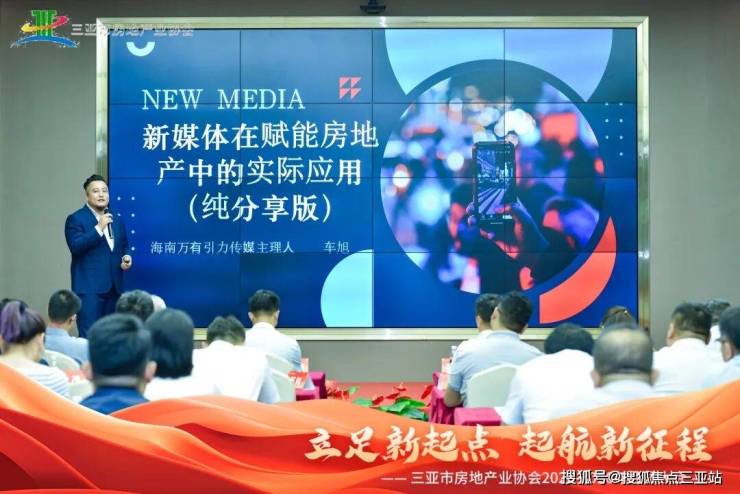 海南万有引力传媒主理人车旭向大会分享了新媒体赋能房地产营销的新路径。车旭表示,三亚作为文旅地产的标杆城市,创新和探索一直是行业的主旋律,结合三亚的客户来自全国乃至全世界,如何打造自己的宣传路径。下一步,将通过新媒体让更多的人了解三亚,打造强IP,让流量更加集中,让新媒体更好赋能地产销售。