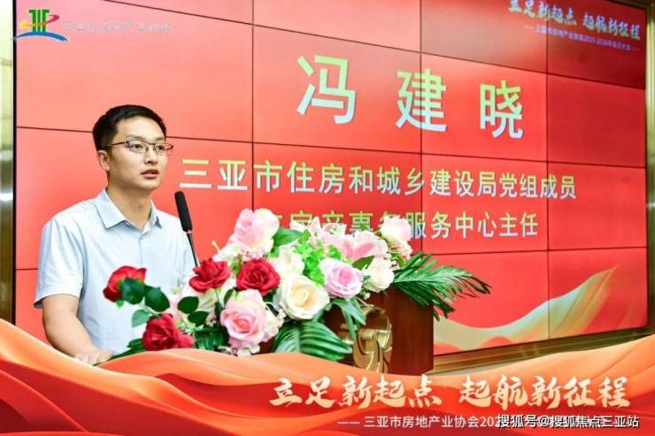 三亚市住房和城乡建设局党组成员、市房产事务服务中心主任冯建晓在致辞中对大会的召开表示热烈祝贺。向长期支持市住房和城乡建设工作的各位企业家们致以衷心的感谢。他指出,回顾我市房地产业发展的实践充分证明,企业是市场发展的主体,协会是行业发展的助推器,只有最大限度地凝聚和调动企业和行业协会的力量,才能形成推动房地产市场平稳健康发展的强大合力。住建部门将以“求真务实、专业高效、廉洁担当”优良作风,进一步提高行政效能,认真听取企业和协会反映的实际问题,做好为企业服务工作,切实解决制约行业发展的难题,着力维护市场稳定。
