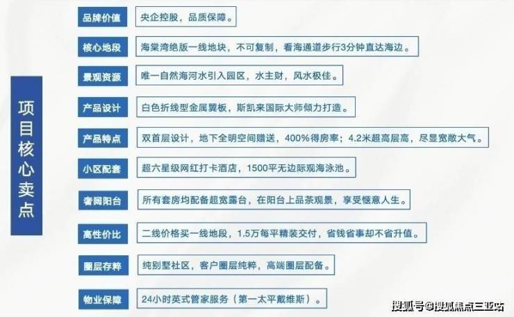 海棠湾•云境 藏国岸-隐云海-海棠一墅。项目携手SKYLINE思凯来、HBA等世界顶级设计团队倾力打造,匠心营造海棠湾一线亲海纯别墅社区。项目以“云境”为核心理念,建筑上规划了六大特色主题空间。22公里海棠湾海岸景致,一线海景出门即享椰林与沙滩;约13.8公里原生态内河水系;丰富自然红树林湿地资源。