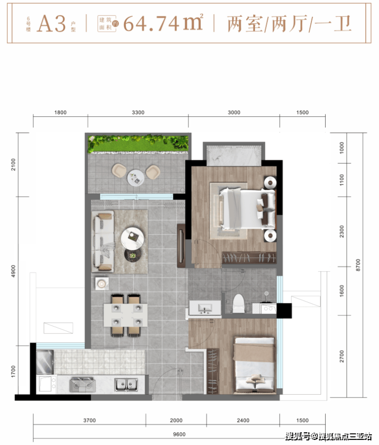 ✨ 6#楼A3户型约64㎡精致两房两厅一卫