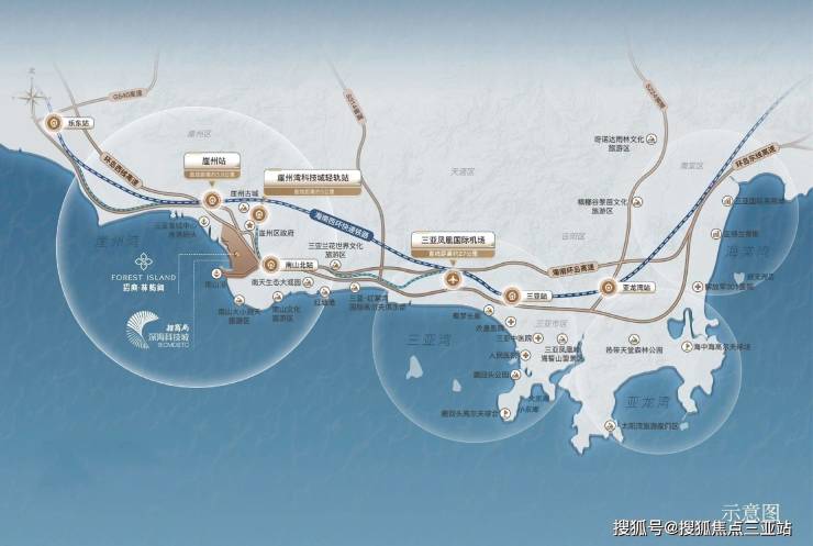 三乐轻轨崖州湾站直线距离约3公里