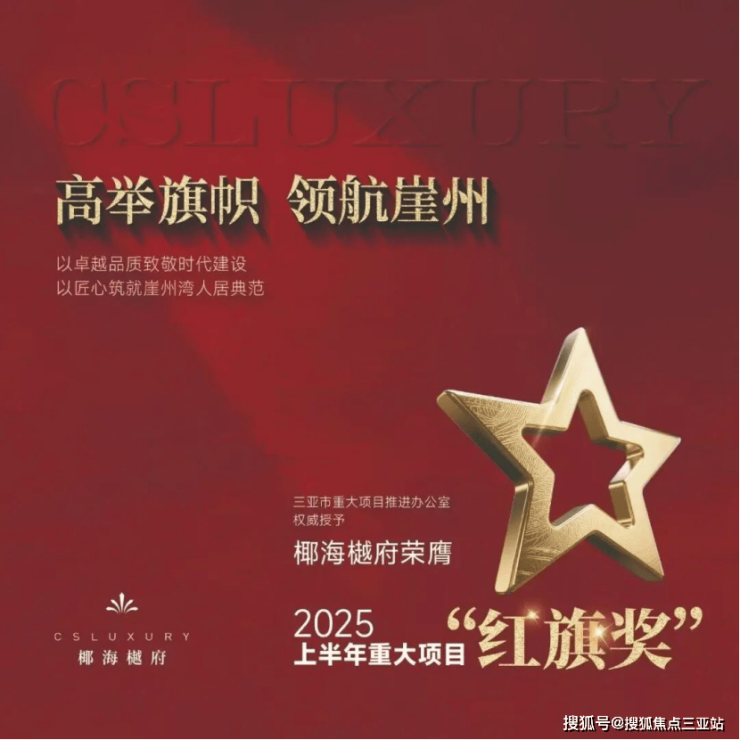 从项目拿地初期的科学规划,到建筑施工的每一道工序,再到最终的楼栋封顶,椰海樾府始终以行业顶级标准严格把控工程质量,在材料甄选、工艺创新、安全管理等方面精益求精,更凭借过硬的建筑品质与卓越的项目管理水平,成功斩获三亚市2025年上半年重大项目“红旗奖”这一重要荣誉。