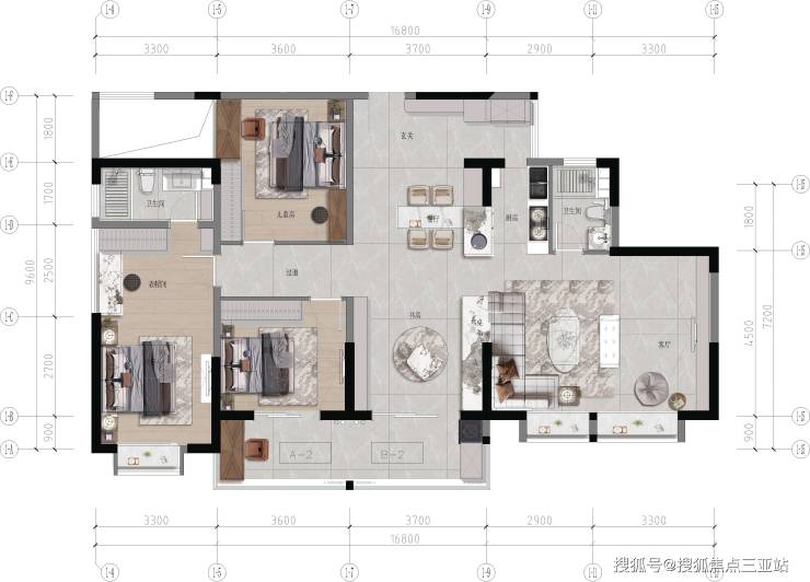 02.【B3 奢阔大平层 建面约89㎡ 三室两厅两卫】