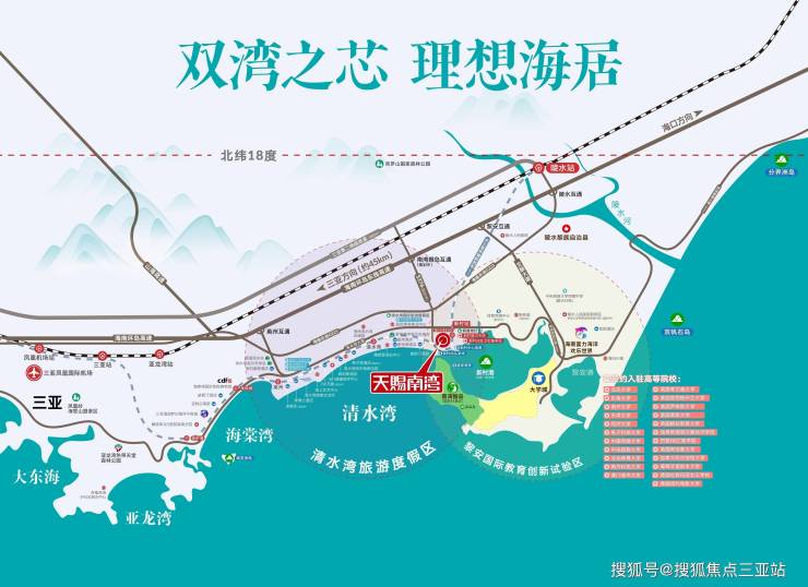 💫全岛出行:环岛高铁陵水站、大三亚城际列车新村站(规划中)、环岛高速英州互通、黎安互通、南湾猴岛互通(即将建设),从项目可以上高速,不堵车,更方便;环岛旅游公路(预计2023年底全线贯通)。