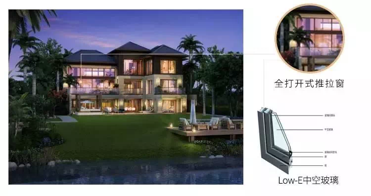 建筑面积65-243㎡的墅院,在规划上就给业主留出了更多可以扩展的空间,花园入户、户户泳池更是为业主的私享娱乐提供了独立的天地。筑于山海间,观山望海,自身一番趣事,为此,融创海棠湾选择了以大开大合的门窗和尽量少框的设计方式,让观景视野较大化,而门窗玻璃更是慎之又慎,选用中空玻璃Low-E,有效阻挡高热量和紫外线的同时,又不失清凉。
