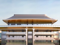 ⭐立面-「椰风海韵」:以垂直线条,构筑建筑骨骼,以金属格栅,让建筑成为记录时间的竖琴