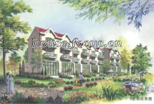 西郊玫瑰湾坐落于沪青平公路旁高尚成熟别墅住宅区,取道沪青平高速公路及延安路高架,只需15分钟车程即可到达虹桥等地区。在两万平米的土地上只用25%的土地塑造居住空间,44户别墅社区不算大,却拥有比大社区更细致精巧的景观表现,从四季花草到地泉旱溪,从阳光大草坪到坡地玫瑰湾,在52%的土地上肆意挥洒着想象力,单纯而又张扬,这就是有天有地有玫瑰的生活。