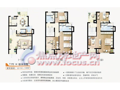 目前推出的叠加别墅主要为145-192平方米的三室二厅和四室二厅,合理的错层设计,使得平面格局极富层次感;大面积露台和阳台的应用让整个居家环境新鲜而通透。除了一般的卧室、厨房外,上叠别墅另设顶层阁楼和凉爽的露台,下叠别墅更设私家花园,每一个丰富多彩的空间,可满足拥有不同情趣的家庭成员。