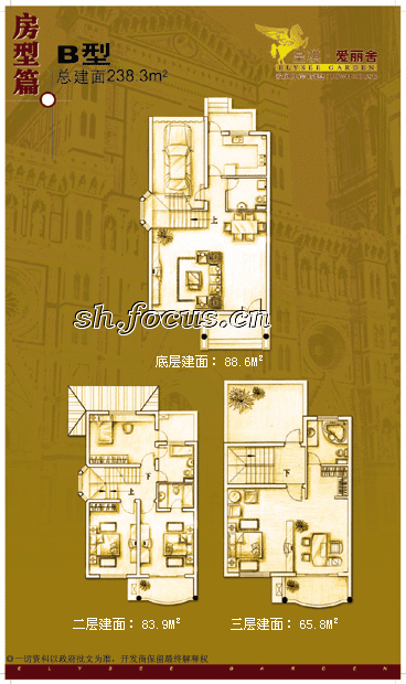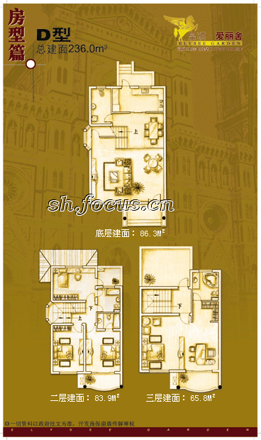 松江皇骐·爱丽舍是由上海皇骐房地产开发有限公司倾力打造的原味欧风水岸别墅,也是松江大学城的纯别墅社区。本案位于大学城东南侧,直面60万平方米中央公园绿化广场,步行至2005年通车的轨道9号线松江新城站10分钟左右。总占地面积6万余平方米,绿化面积高达50%以上,由联排欧风别墅组成,区内围绕中心湖畔进行整体布局,在园景和各处端景的设计上均具浓郁的欧洲风情,与小区英式、法式、西班牙式的外立面建筑风格相呼应。包括双拼别墅、四联别墅、八联别墅;双拼别墅的面积在271平方米左右,四联别墅的面积在235平方米之间。